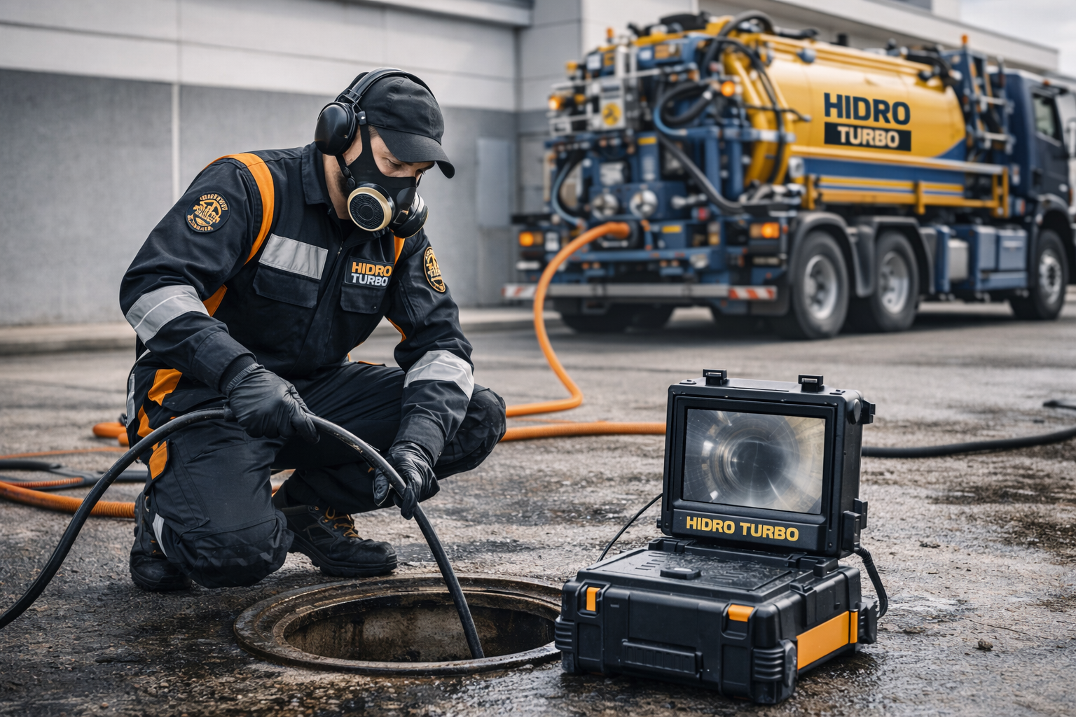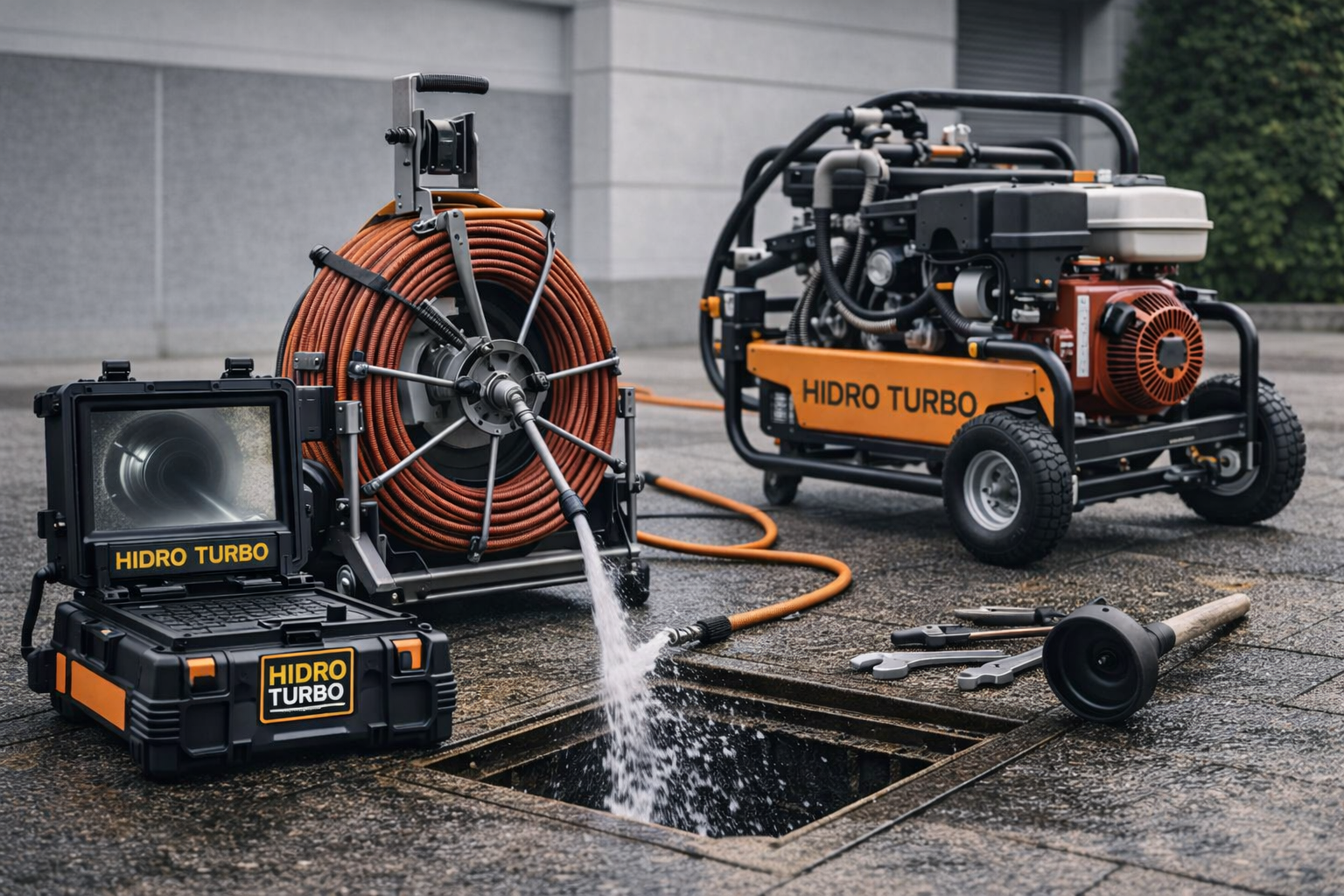 Limpeza com jato de alta pressão para remover sujeiras e obstruções difíceis com eficiência.